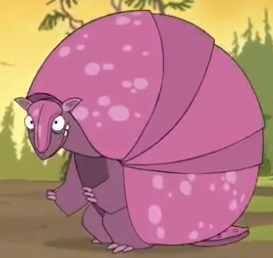 Pinky is an armadillo that is very timid. Whenever he hears a loud noise or sees a large fast vehicle closely passing near him (like the Buttsquat Beach Blitzer), he curls up into a ball and rolls quickly away. His large size and fast speed while rolling can cause some damage, such as destroying the Camp Lakebottom outhouse.